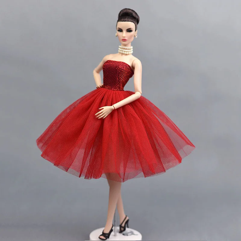 Red Short Dress For Barbie Doll One Piece Evening Dresses Vestido Clothes For Barbie Dollhouse 1/6 BJD Doll Accessories