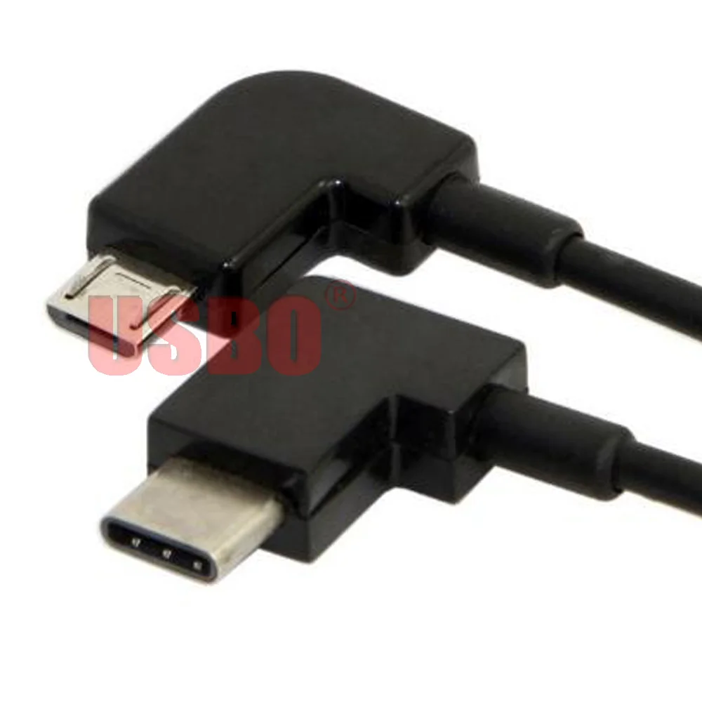 Высокое качество двойной локоть черный 0,3 м USB3.1 Тип C папа-папа микро-USB Дрон пульт дистанционного управления адаптер изменить кабель
