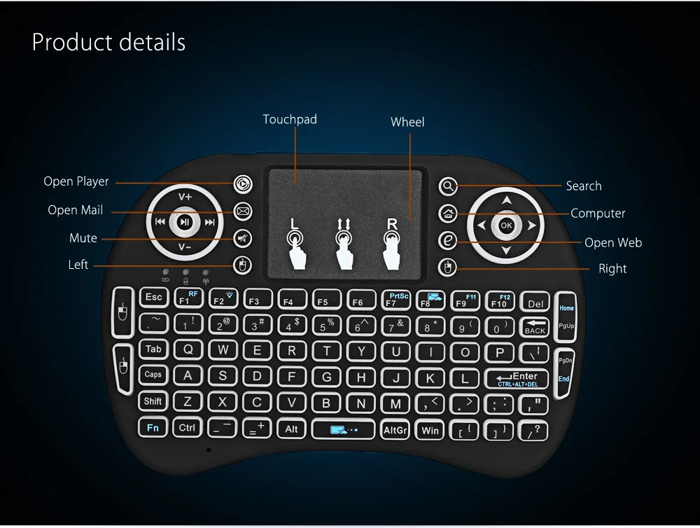 | Посылка содержание | 1 х 2,4 ГГц мини беспроводная QWERTY клавиатура, 1 х USB кабель, 1 х USB приемник |
