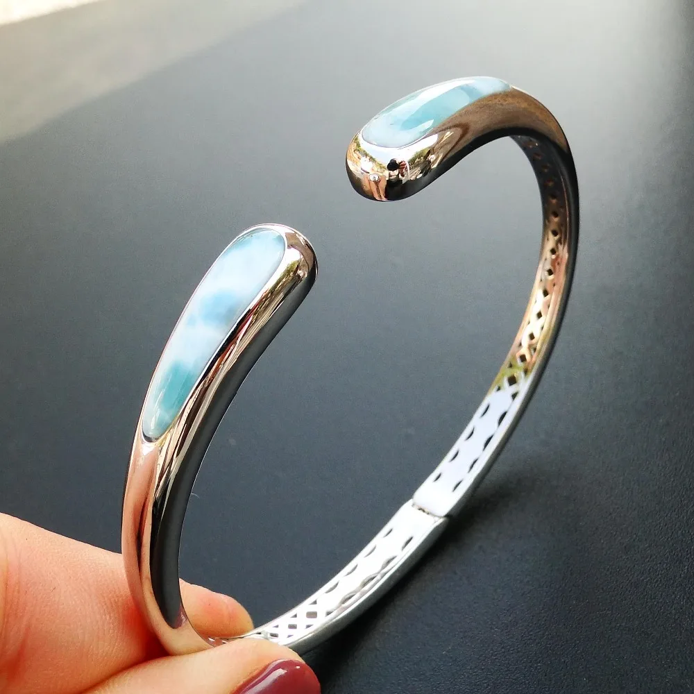 Женские Ювелирные изделия, высококачественный натуральный браслет из ларимара, изысканные ювелирные изделия, браслет с ларимаром, 100% Стерлинговое Серебро 925 пробы, браслет для женщин, подарок