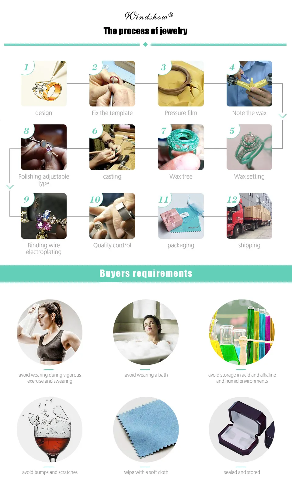 1. Серебро и золото не могут носить одновременно, приведет к серебристо-желтому 2. Следует незамедлительно удалить все виды ювелирных изделий, чтобы предотвратить появление щелочных продуктов, фторидной реакции ювелирных изделий, избегая при этом потери ювелирных изделий. 3. Избегайте контакта с распылителем для волос, духами, средствами по уходу за кожей, серным мылом и т. д. из-за химических веществ в их ингредиентах серебряные украшения и другие ювелирные изделия тусклые или даже черные. 4. Упражнения, сухость и шероховатость должны избегать ношения ювелирных изделий или легко ускорять износ ювелирных изделий и ювелирных изделий, вызванных деформацией или разрушением. 5. Старайтесь избегать контакта с лекарствами. 6. Независимо от серебра или других ювелирных изделий, лучше всего снять все украшения перед сном, на следующий день в зависимости от дня подходящего выбора аксессуаров для одежды, это хорошая привычка носить ювелирные изделия. Особенно более длинные серьги, более прочный светильник, более тонкие модели ювелирных изделий, при условии тщательного обслуживания, вы можете носить в долгосрочной перспективе, уменьшая человеческие повреждения и ненужные обслуживания.