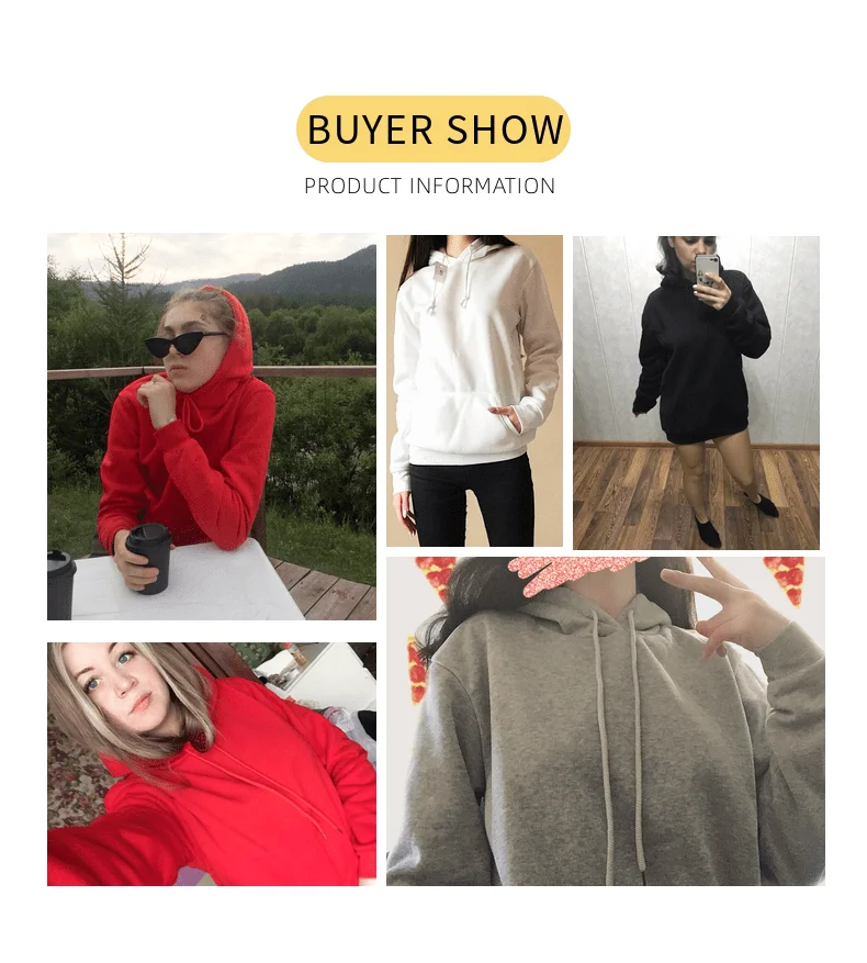 Женская толстовка с капюшоном Kawaii, однотонная флисовая толстовка с капюшоном, цвета: черный, белый, серый, розовый, красный, синий, весна 2019 USD 12,37/Шт/Лот 1