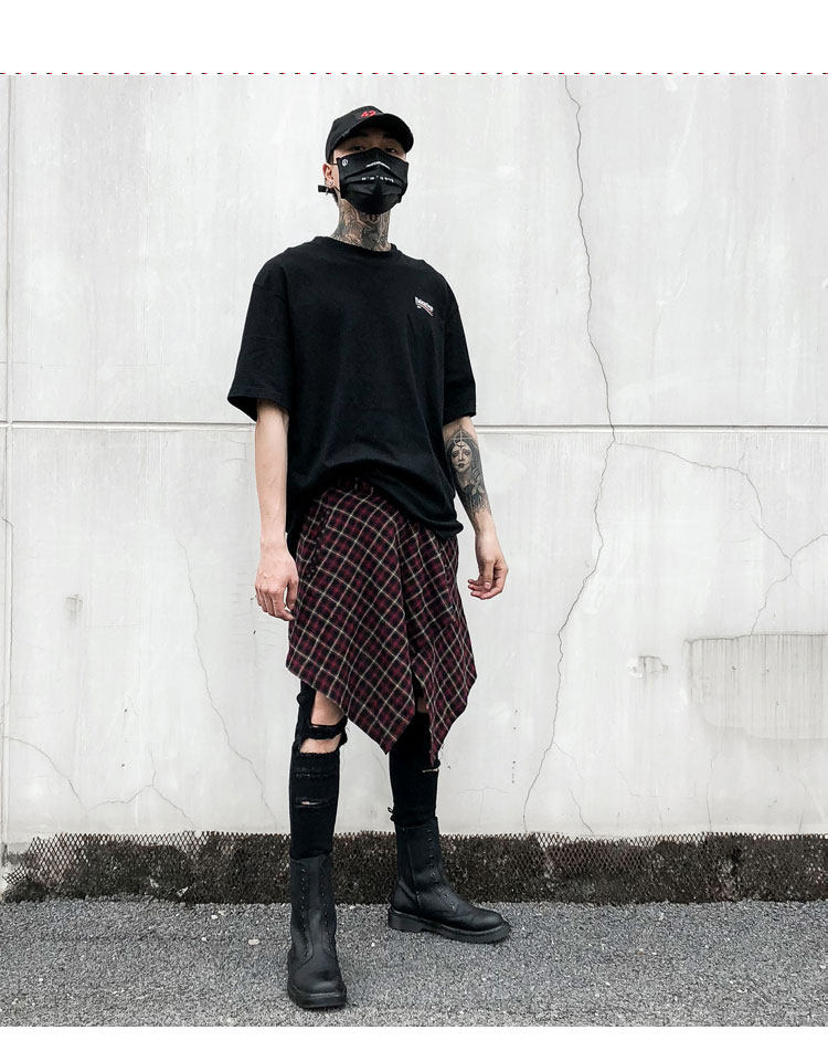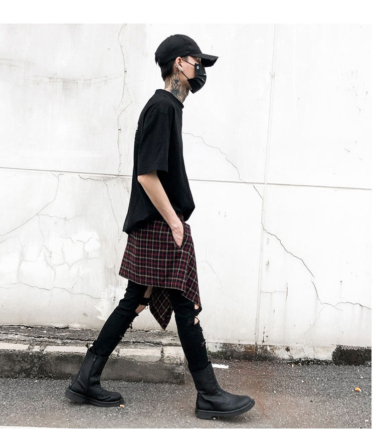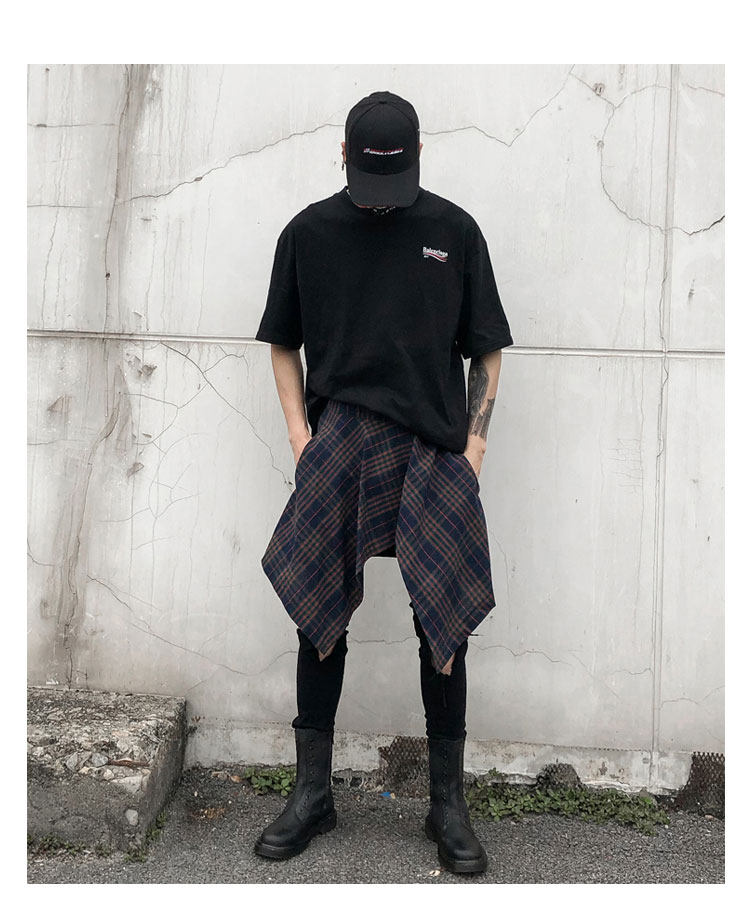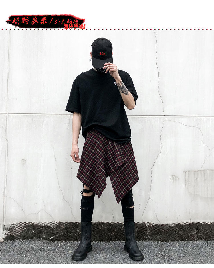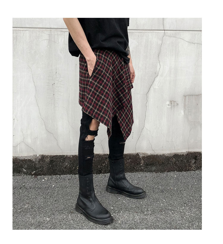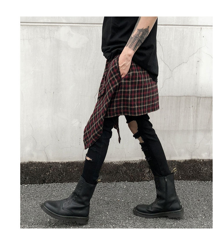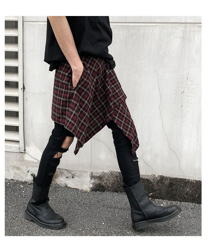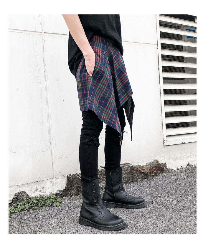 Новинка 2018 Мужская модная индивидуальная клетчатая юбка Повседневная тёмная для