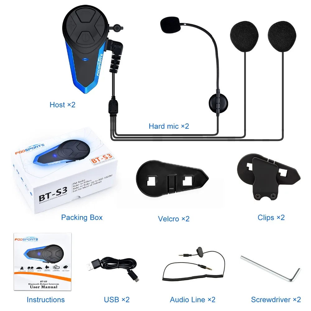 Fodsports 2 шт. BT-S3 мотоциклетный шлем Интерком Мото шлем Bluetooth гарнитура Intercomunicador Водонепроницаемый BT интерфон FM