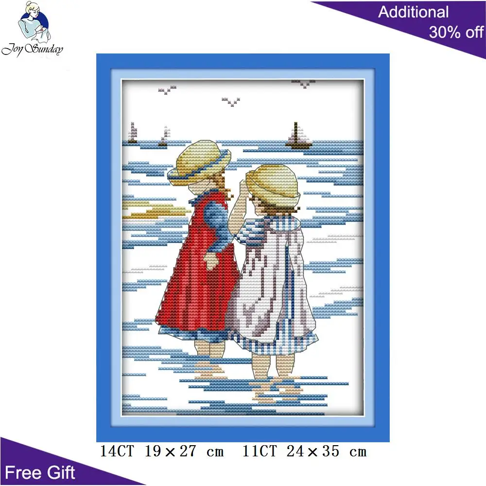 Joy Sunday/детский домашний декор K207K209K210K252 для мальчиков и собак, ловящих рыбок, сестер на пляже, играющих на море, наборы крестиков