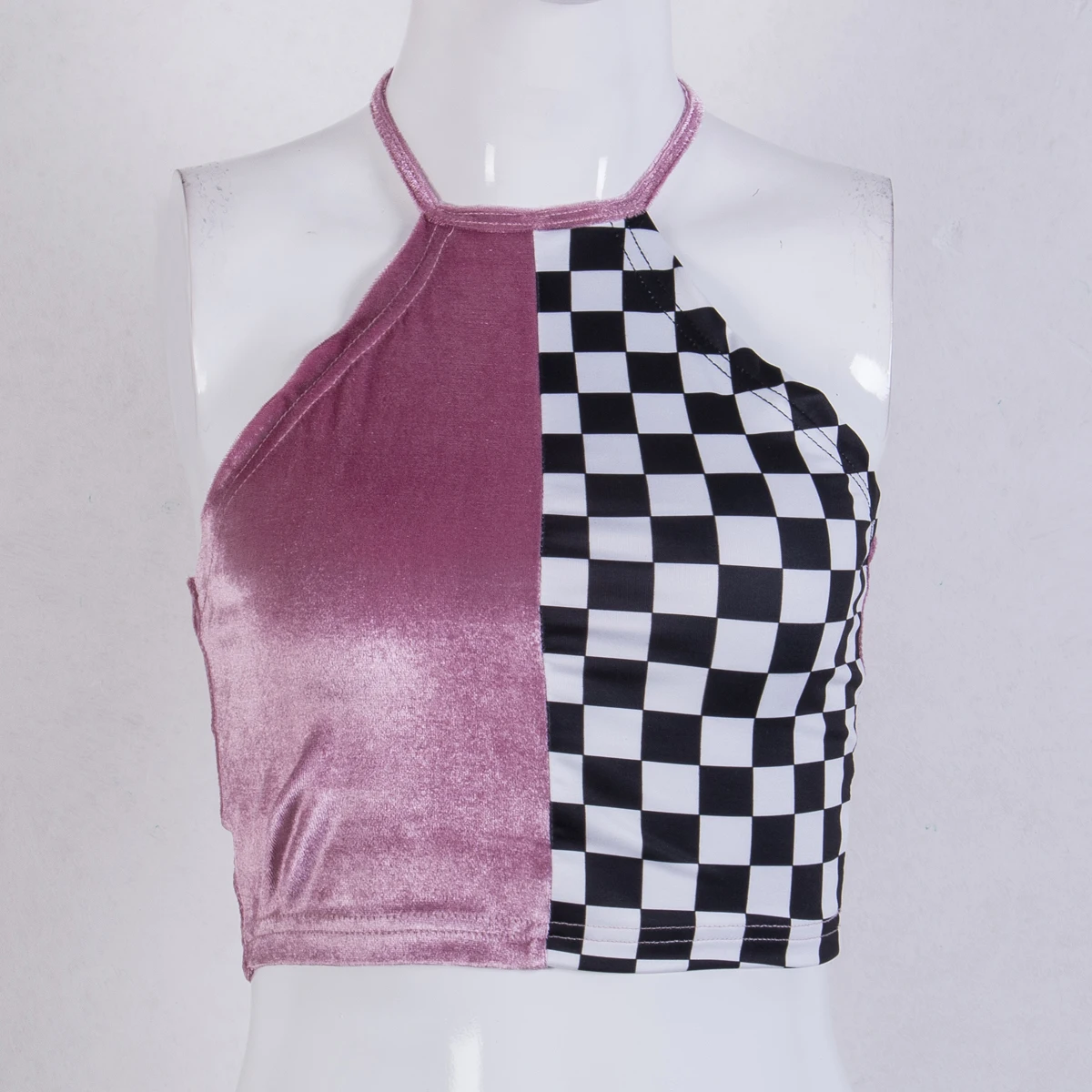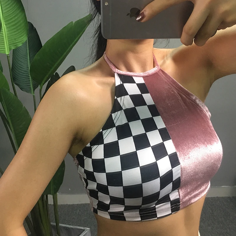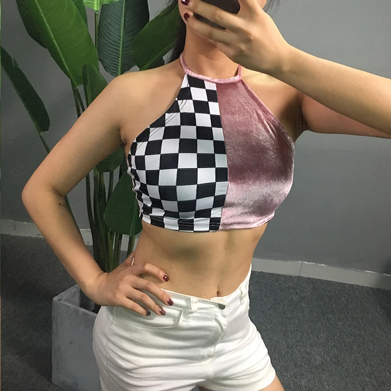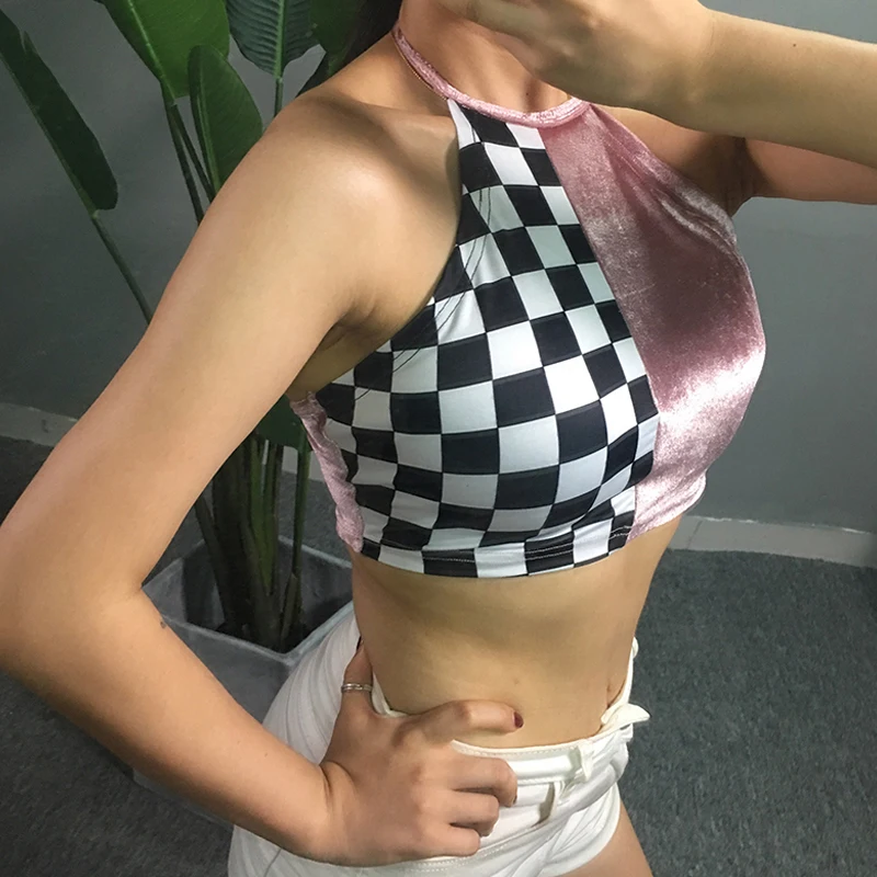 Модные летние повседневные женские топы без рукавов с поясом, клетчатые Лоскутные Топы с коротким рукавом, вечерние топы, Размеры S/M/L