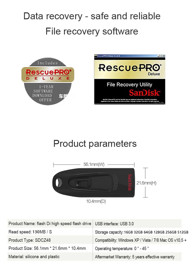 The SanDisk Ultra USB 3.0 Flash Drive combines faster data speeds and generous capacity in a compact, stylish package. Spend less time waiting and transfer files to the drive up to ten times faster than with a standard USB 2.0 drive.With storage capacities up to 256GB, the drive can accommodate your bulkiest media files and documents.