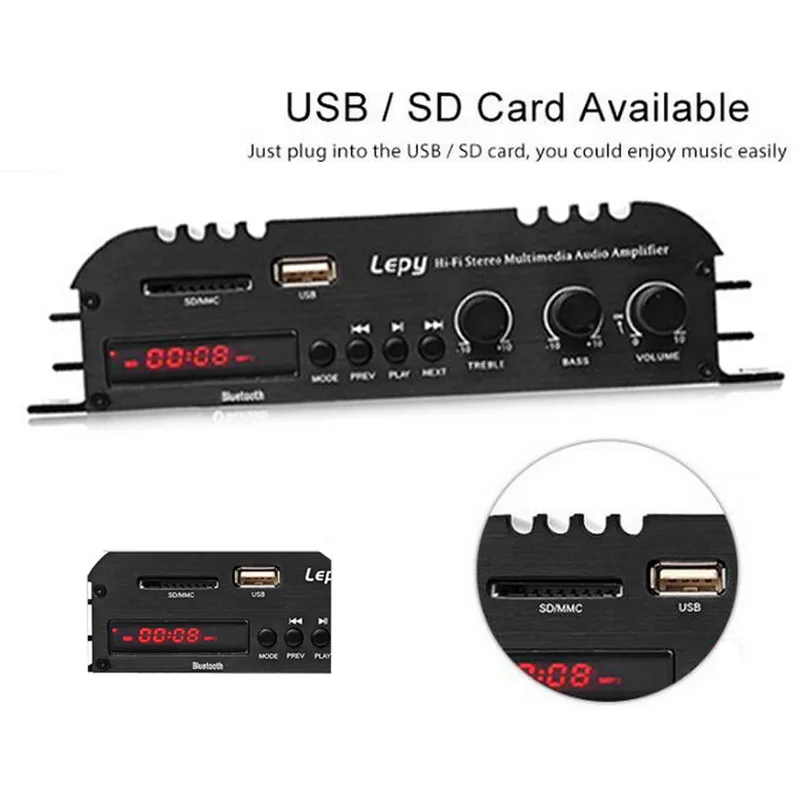 Посылка:1 x усилитель Bluetooth Lepy LP - 269S, 1 x Кабель FM, 1 x пульт дистанционного управления, 1 x Er