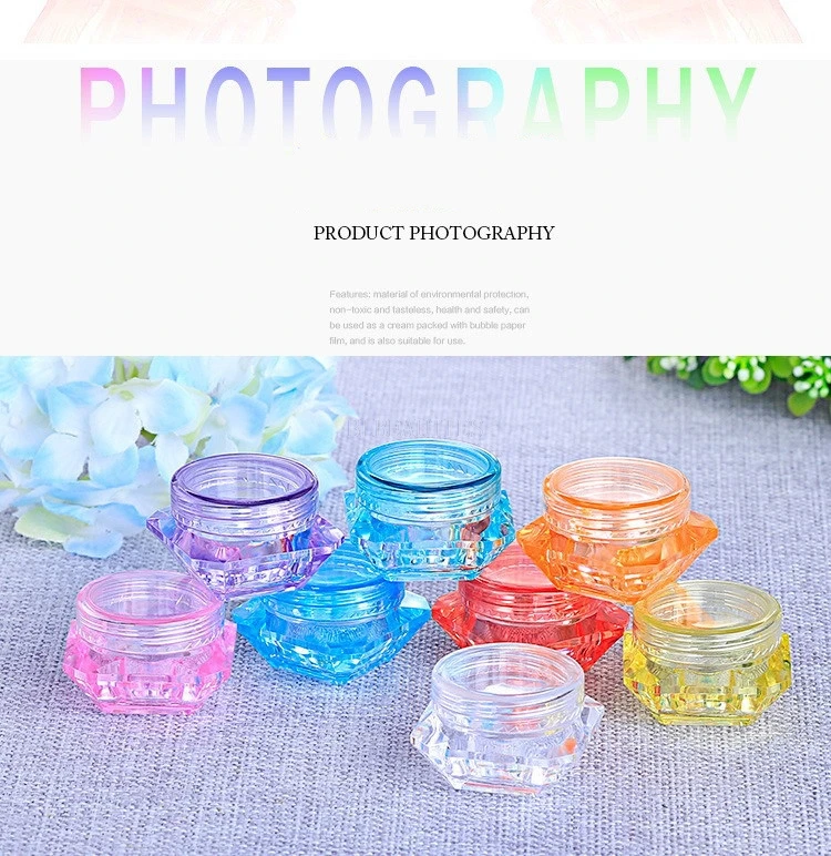 1000 шт./лот, алмазная квадратная пластиковая банка, 3g, 5g, крем, банка для заправки образцов, банка для теней, пустая банка для пудры для ногтей |