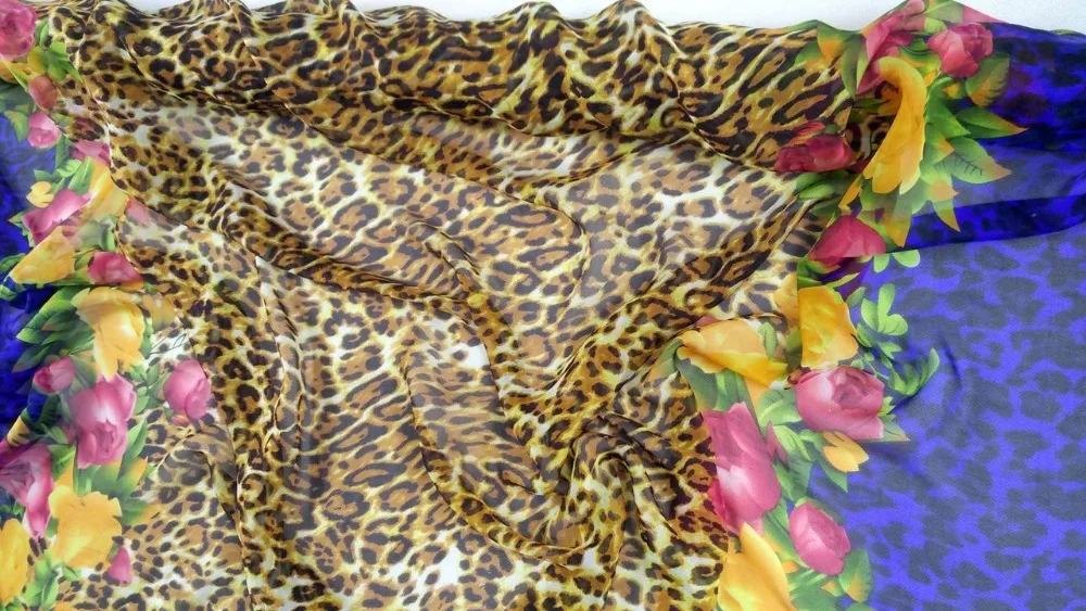 Ткань из чистого натурального шелка супертонкая шифоновая ткань с леопардовым