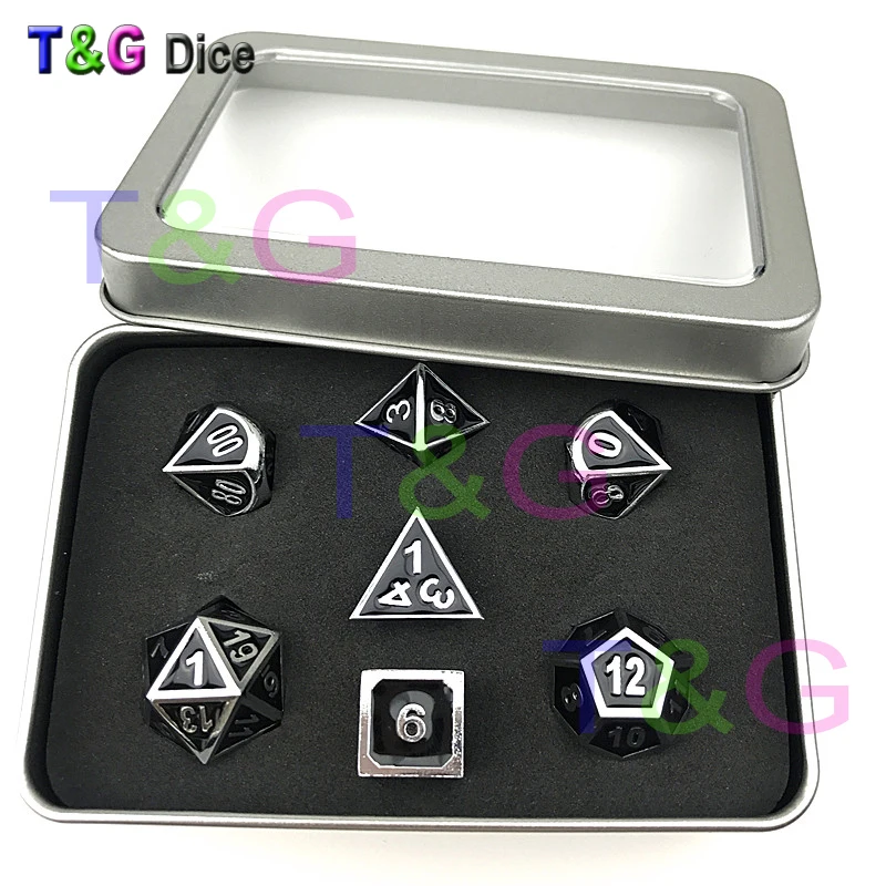 2017 Новый DnD 7 шт./компл. креативные многогранные металлические игральные кости Dado D4 D6 D8 D10 D10 % D12 D20 набор