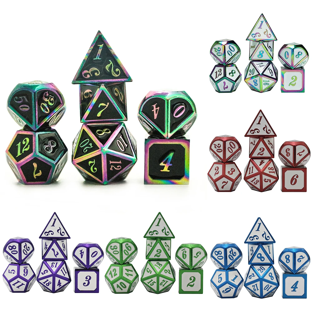 7 шт./компл. набор металлических игральных костей 26 стилей + 1 сумка D4 D6 D8 D10 D12 D20 для ролевых игр DND RPGs настольная игра в подарок