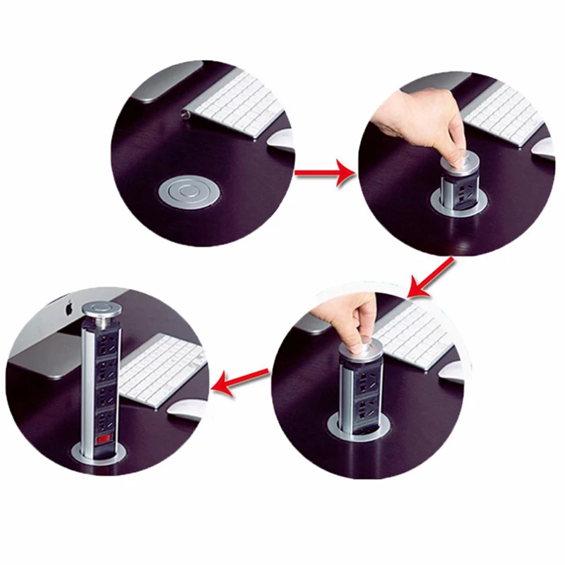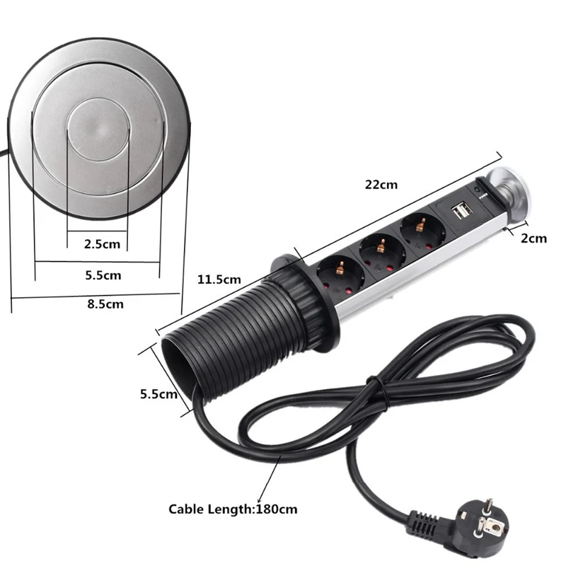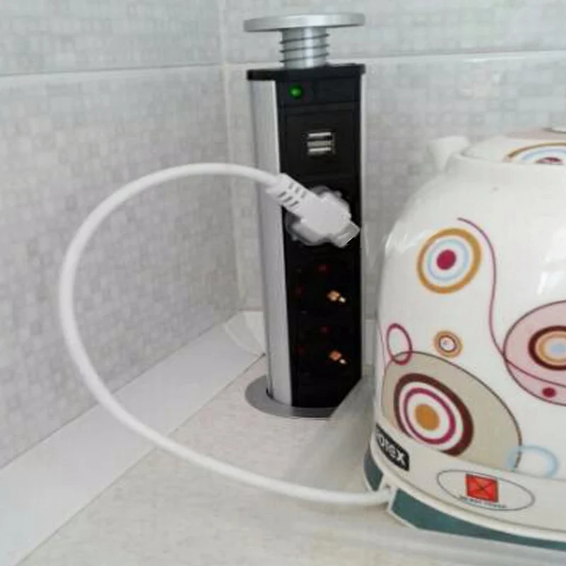 Aluminum Shell Tensile UR-A Socket with Charge USB 3EU Outlets Kitchen Office Desktop EU Socket