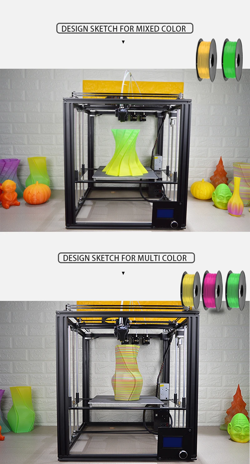 2. Многоцветная печать, встроенный автоматический двигатель смешивания цветов, одна кнопка для преобразования монохромной 3D модели в многоцветную модель.