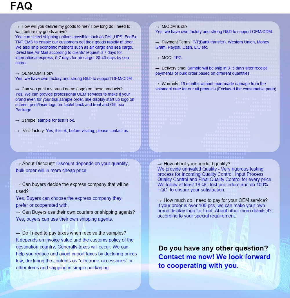 Дополнительно: 1D / 2D сканер штрих-кода, NFC/RFID , UHF / LF(Гибкие настройки в соответствии с вашими требованиями, если у вас есть какие-либо вопросы, пожалуйста, свяжитесь с нами)Стандартные аксессуары: