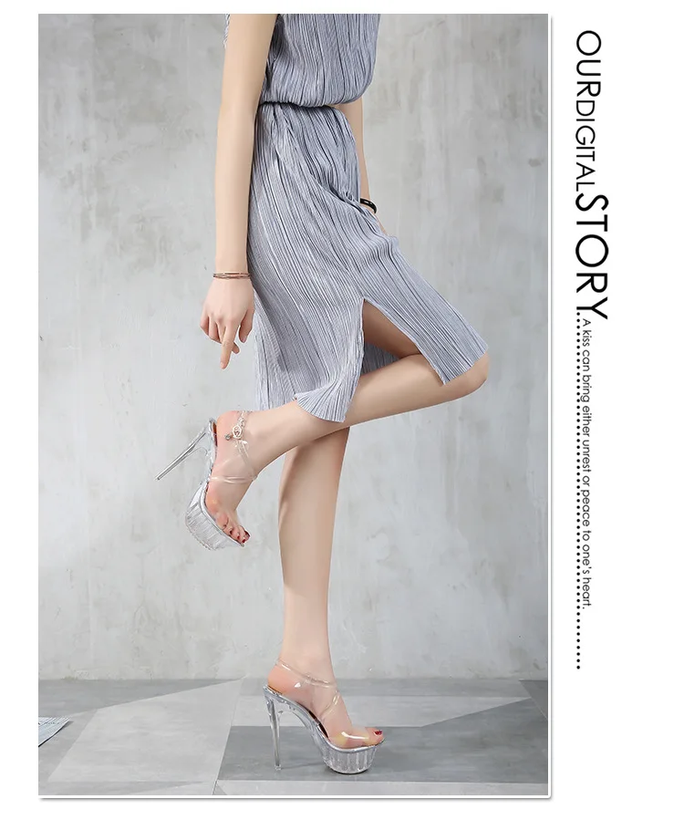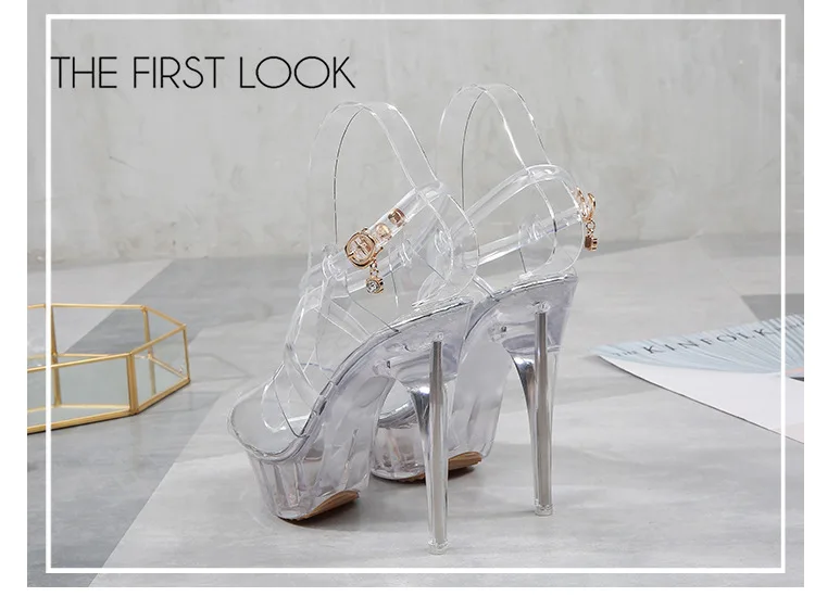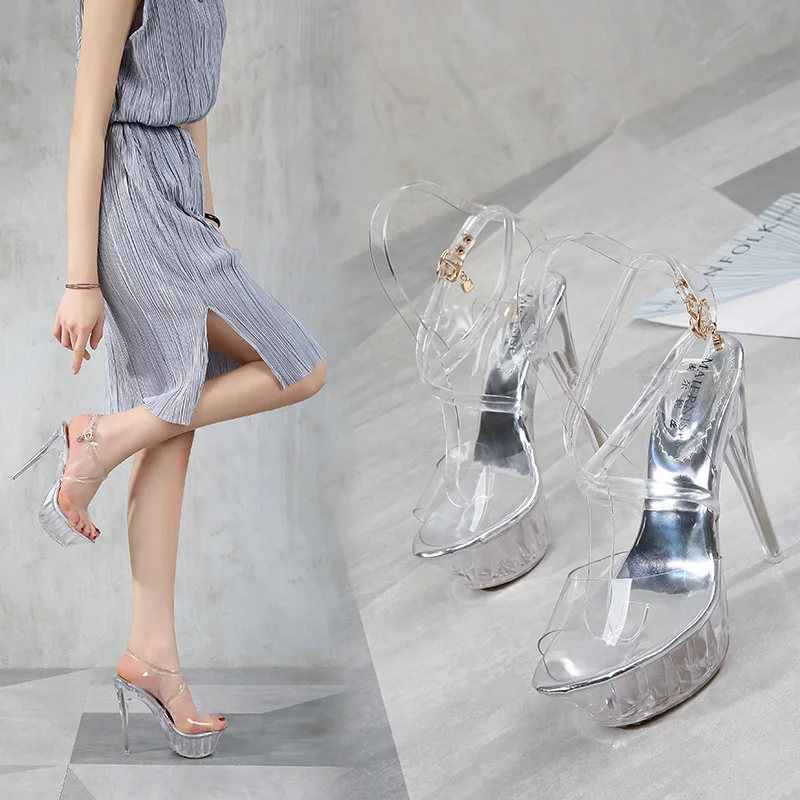 Женские босоножки со стразами; Sandalias Feminina; Прозрачные Высокие каблуки 14 см; Летняя женская свадебная обувь; Модные женские босоножки на платформе; Размер 43