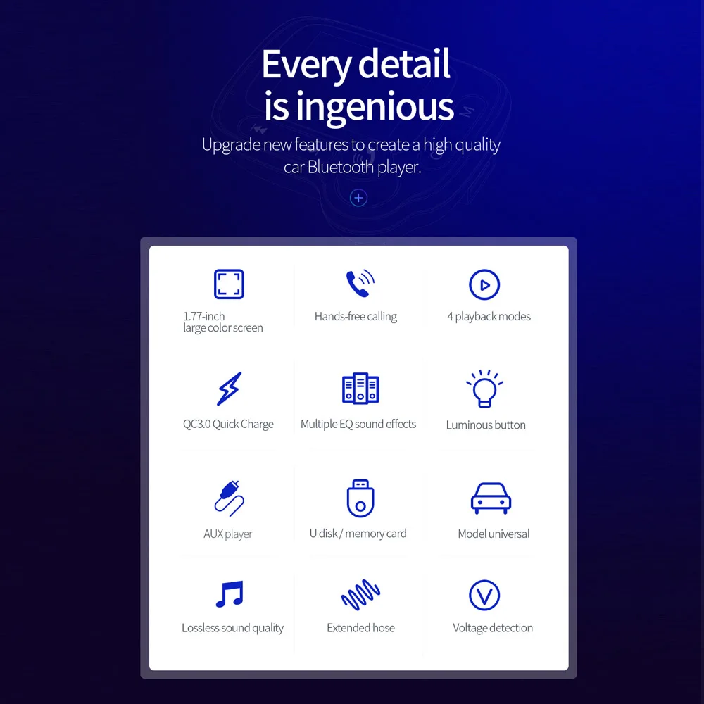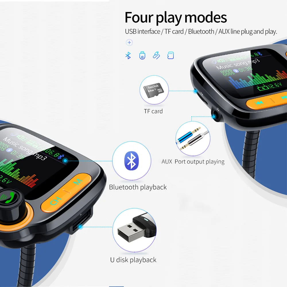 1. Автомобильный Bluetooth MP3 поддерживает звонки без рук, встроенный высокочувствительный микрофон, HSP нижний шум и подавление эха.