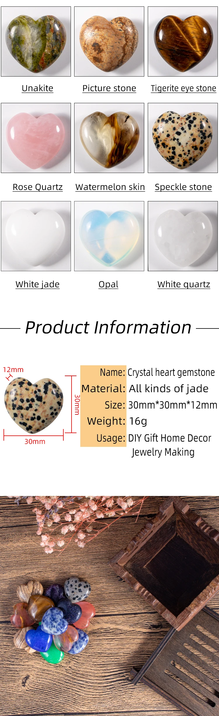 Размер: 30x30x12мм Вес: около 16 г Материал: камень Qct: 12 шт./лот