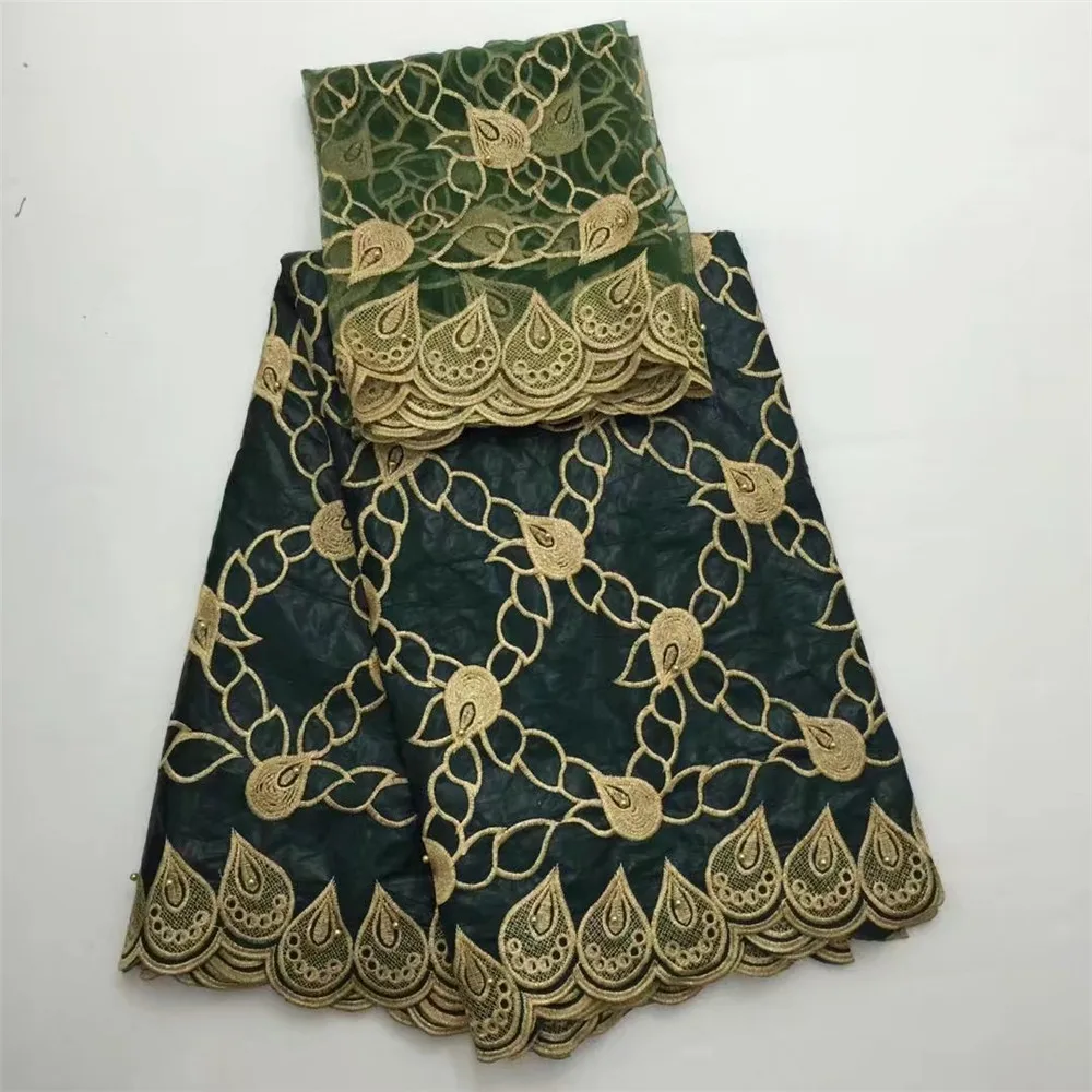 Green Voile Lace latest lace fabric wholesale 2017 African best cotton bazin riche getzner fabric for Nigerian Wedding BZ13-1