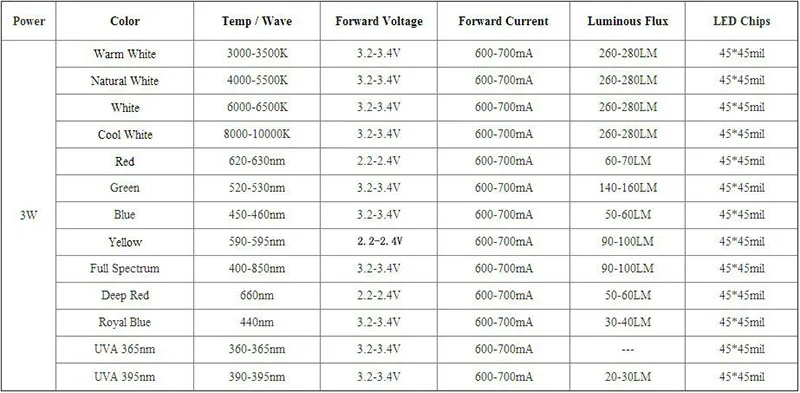 Размер светодиодного чипа 3 Вт: 3 Вт, 45 мил x 45 мил
