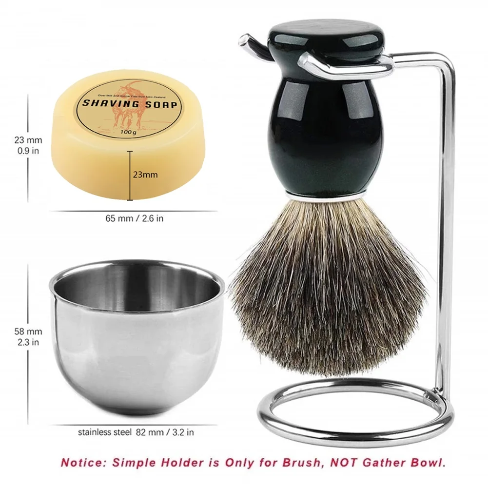 Черный набор кистей для бритья 4в1 натуральная щетка для бритья барсук деревянная ручка нержавеющая сталь подставка для бритья и мыльница с мылом