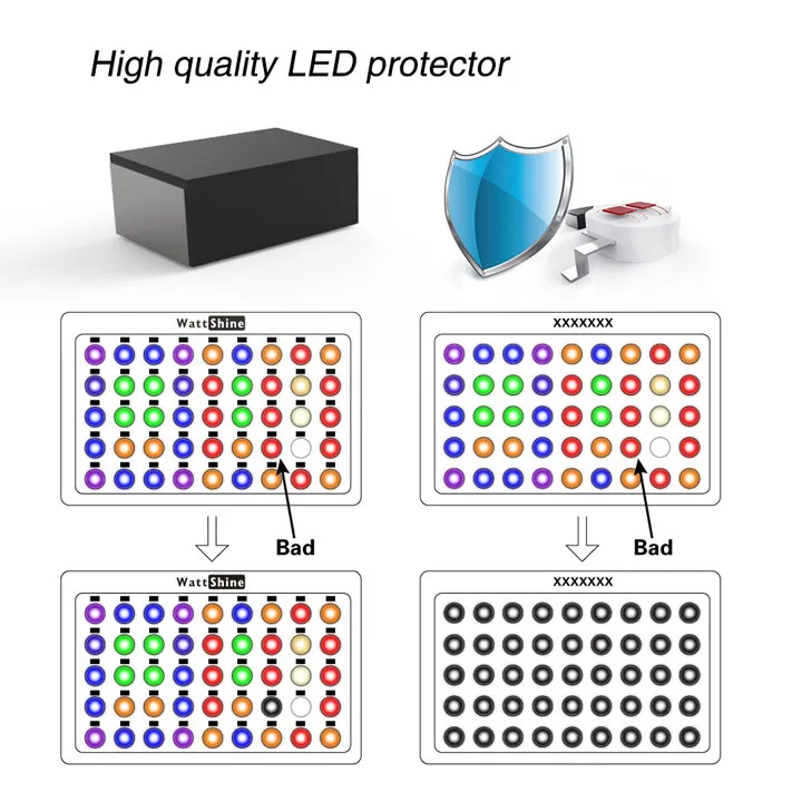Вопросы и ответы: 1. Почему некоторые светодиодные лампы не светятся при включении питания? Это должна быть инфракрасная светодиодная лампочка, которая не может видеть свет голыми глазами. Пожалуйста, не думайте, что это не работает. 2. Почему некоторые покупатели должны платить таможенные пошлины Система тарифов в каждой стране отличается, и мы не берем никаких таможенных пошлин или налога на импорт, эти сборы Не включены в стоимость товара и стоимость доставки, эти расходы обычно взимаются путем доставки (доставка) Компания, некоторые страны не могут быть сделаны Бесплатные товары, пожалуйста, отправьте запрос по электронной почте или проконсультируйтесь с нами перед покупкой. 3. Почему свет 900 Вт (или другой Вт) в списке, но фактическое энергопотребление 130 Вт +/-5%? Как вы знаете, большое преимущество светодиодного света является энергосбережением, поэтому для запуска света требуется меньше энергии. Есть Синее и красное. Светодиодный s в светодиодный свет для выращивания и напряжение синего 3,2-3,4 V и напряжение красный светодиодный является 2,2-2,4 V, И потребляет меньше энергии не влияет на функцию освещения растений. Гарантия: Мы предлагаем 3 года гарантии с бесплатными зарядными компонентами. В течение гарантийного срока, если есть какие-либо дефекты, Пожалуйста, отправьте нам картинку, и наши инженеры изучат проблему. Мы как можно скорее дадим вам решение. Потому что мы в Китае, поэтому мы предпочитаем отправлять новые продукты клиентам и научить их, как решить проблему Чем доставка светодиодных ламп.
