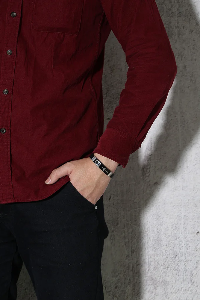 Удобно носить? Черная резиновая лента-это светильник, вес и удобство. Пряжка из нержавеющей стали безопасна и проста в использовании.? Идеальные повседневные ювелирные изделия и подарок? Обязательный аксессуар для любого гардероба. Классический дизайн, стильный и нежный для повседневной носки. Это также лучший подарок для семьи, лучший друг? Материал и размер? Классический и прочный браслет из нержавеющей стали + резиновый ремешок, Длина: 16,5-21,5 см Ширина: 10 мм; Вес: 16 г.