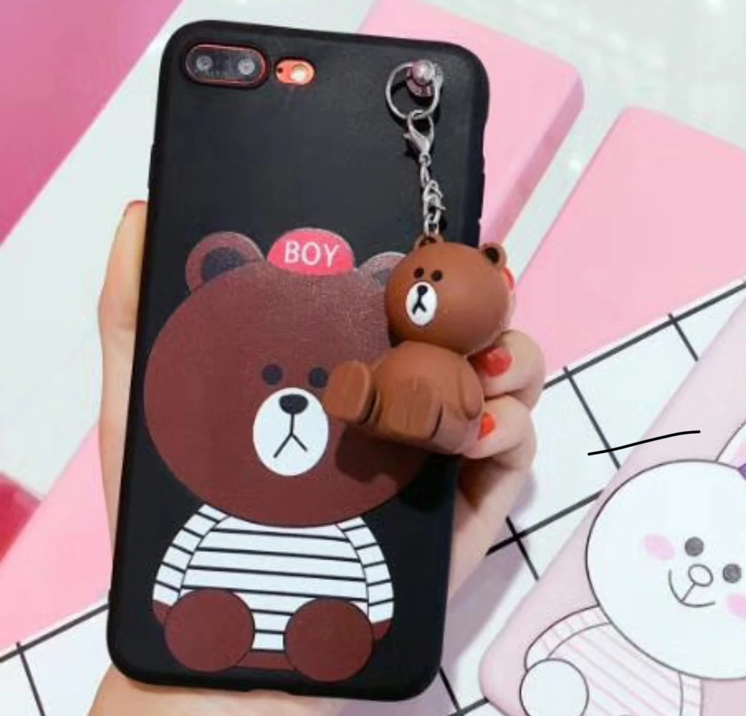 for Vivo Y79 Case Cute Animal Cartoon Brown Bear Connie Rabbit Chicken Best Friends Back Cover for Vivo Y79 Bag with Toy Stand