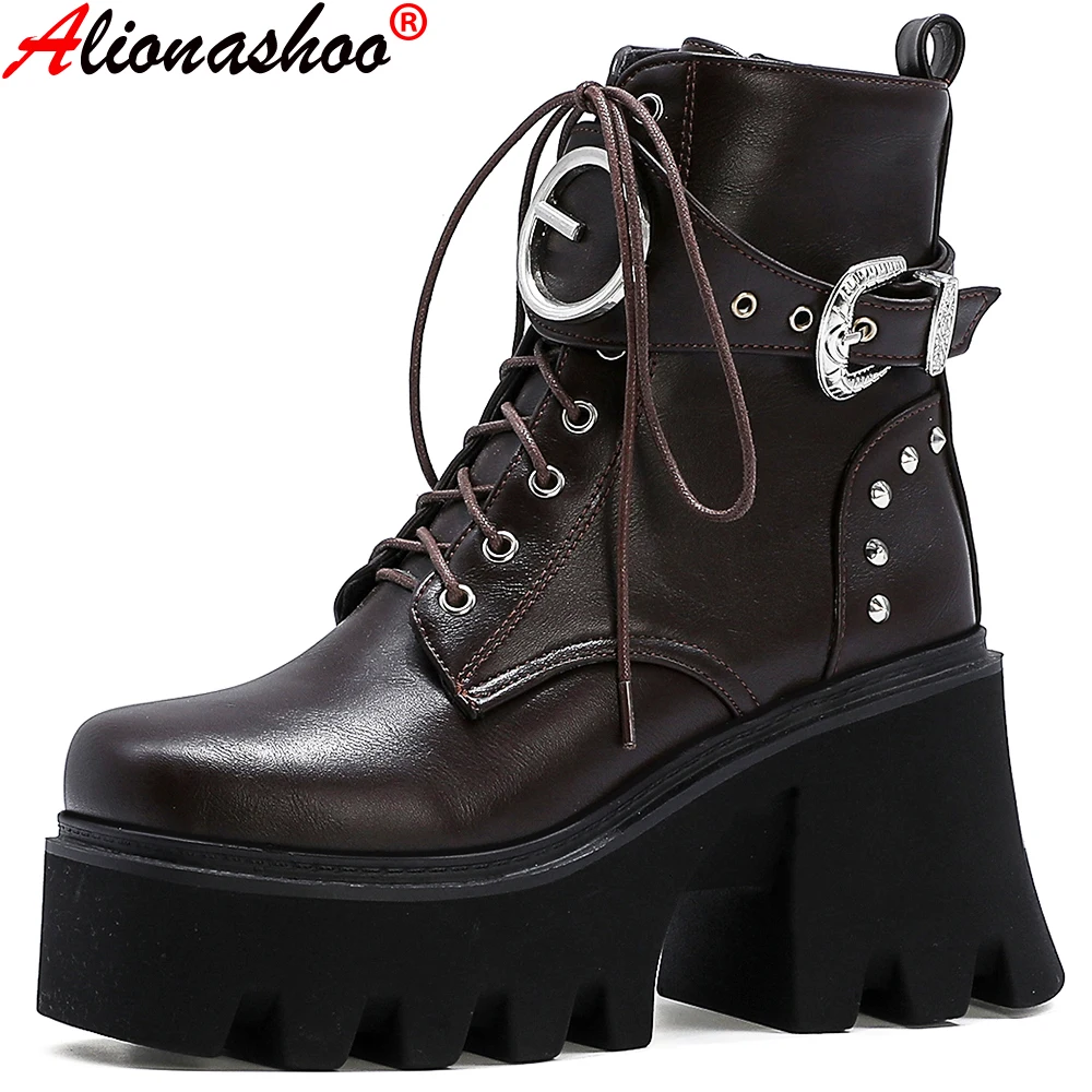 | Пикантные осенние сапоги Aliona Shoo с заклепками, женские сапоги на платформе