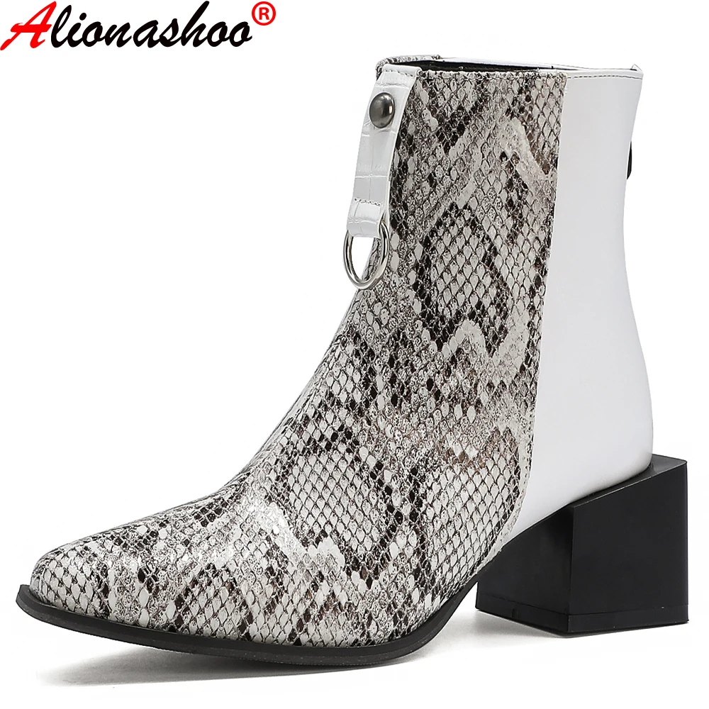 | Женские осенние ботильоны с тиснением под змеиную кожу