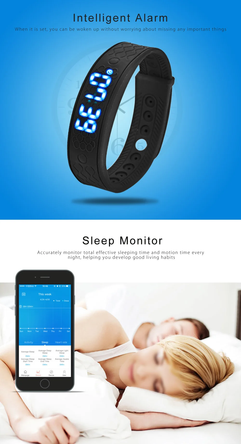 Этот умный браслет может записывать шаги, калории и дистанцию, чтобы вы могли знать ваши спортивные данные, настройте программу упражнений и живите более здоровую жизнь