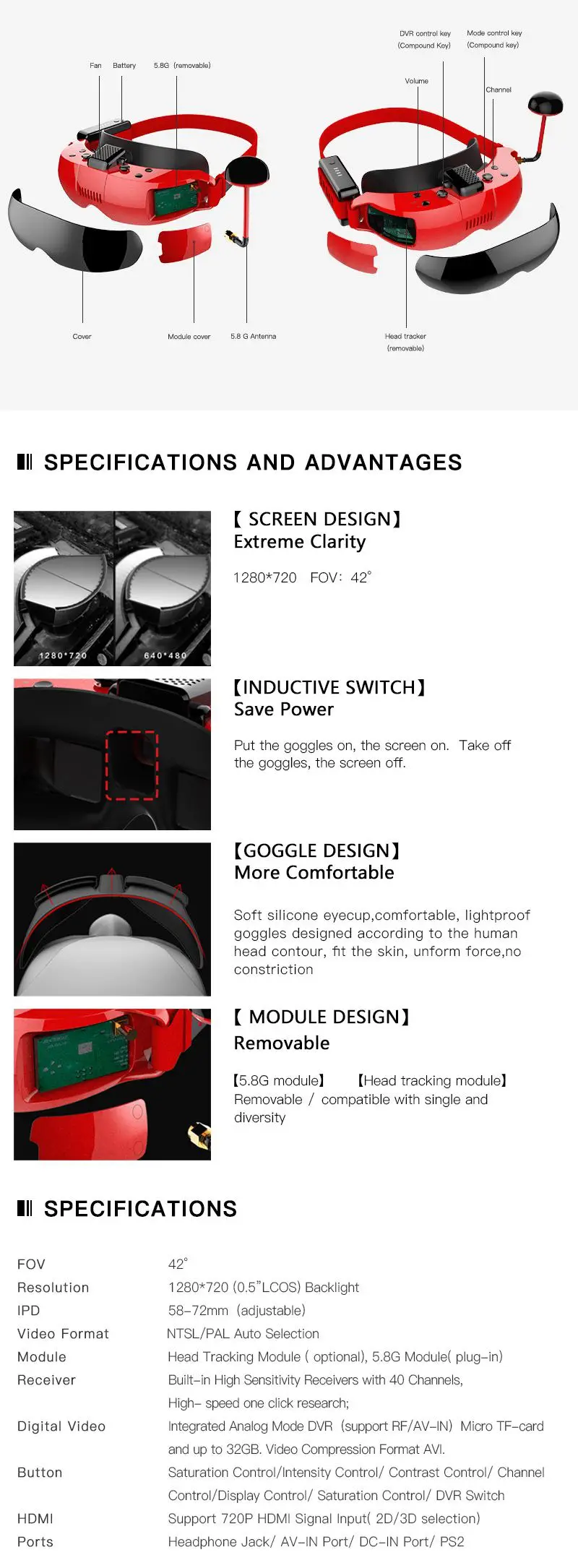 1 x TOPSKY F7X FPV Goggle