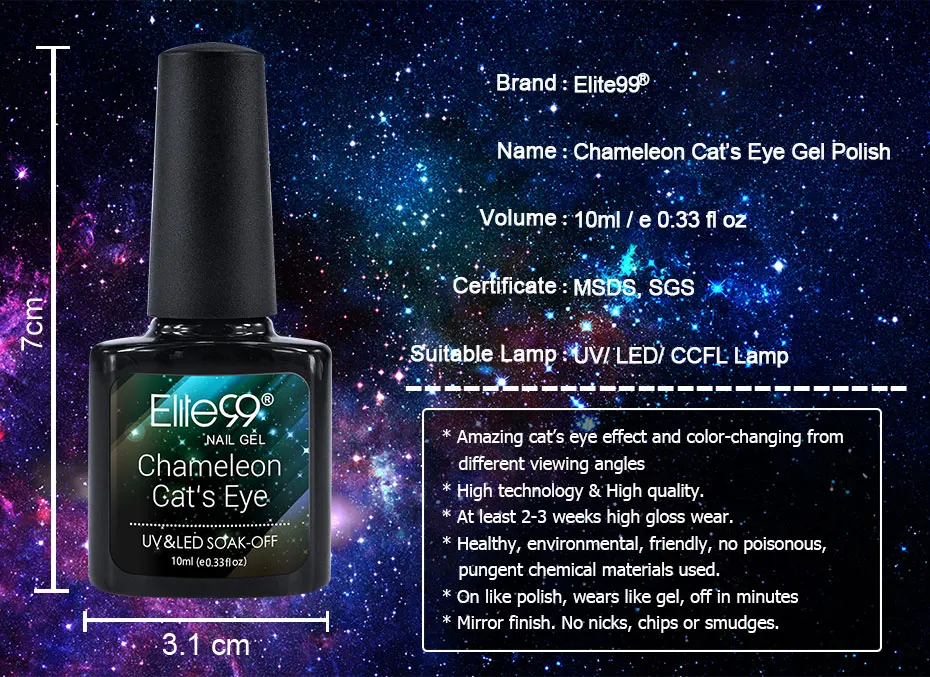 Elite99 Является новейшим брендом, который входит в индустрию моды для ногтей! Качество продукта является основой нашего бренда, который приносит вам полные, блестящие цвета, которые блестят в течение нескольких недель. Если вам нравятся руки и ногти, пожалуйста, используйте лак Elite99, чтобы сделать их ярче и сделать себя более уверены.