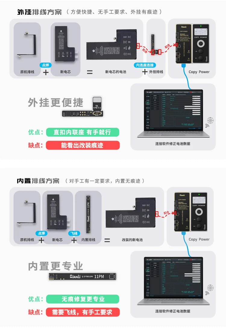 Qianli Copy Power Battery Data Corrector For iPhone 11/11Pro/12 Pro Max Batteries Health Recover Cycles Clear Pop Ups Repair Box