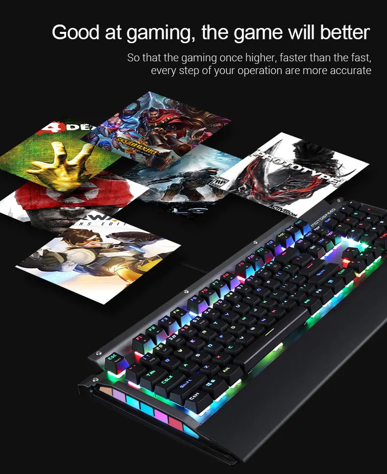 104 клавиши, встроенный игровой чип, передовые технологии механического переключения, четкий звук ввода дает вам более приятные ощущения. Все-ключ против привидения, с 0,1 мс более быстрой скоростью отклика, более свободно для игр, идеально подходит для любителей игр, чтобы в полной мере насладиться удовольствием от игр.