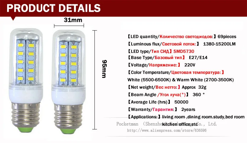 E27 E14 Светодиодная лампа для кукурузы AC 220 V SMD 5730 Светодиодная лампа для кукурузы Лампа для проектора 69/48/36/24 LED E27 светодиодные лампы