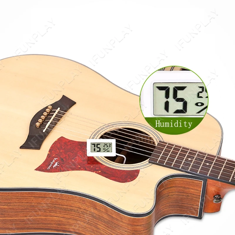 Наш цифровой термометр/гидрометр комбо использует Высокочувствительный сенсор, можно легко обнаружить влажность внутри Гитары или в тех случаях, когда оно находится в Гитары чехол. Вы также можете самостоятельно установить этот блок в свой чехол для гитары. Зонд поможет получить точное чтение.