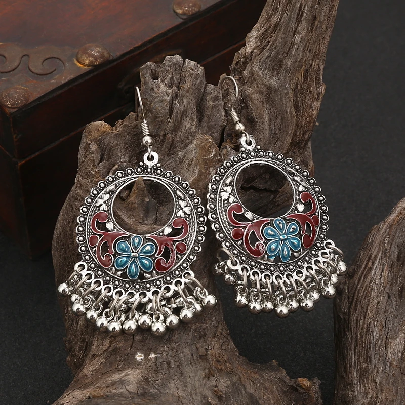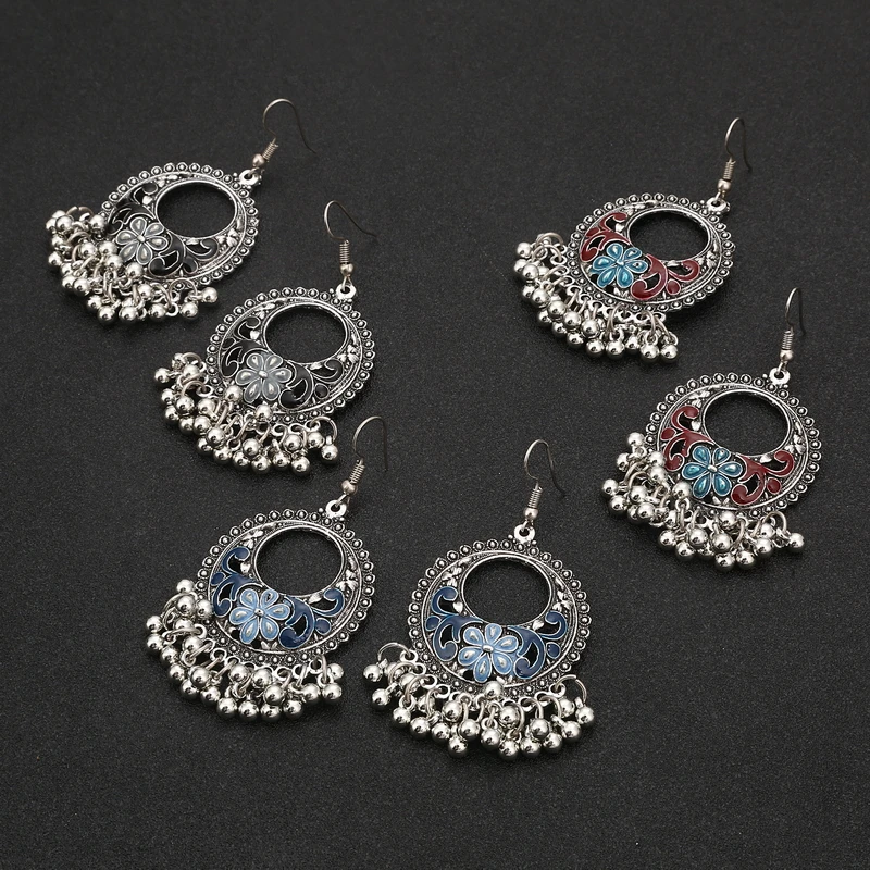 Винтажные богемные висячие серьги-подвески для женщин, полые геометрические эмалированные бусины ручной работы с масляным капельным цветком, богемные ювелирные изделия bijoux femme