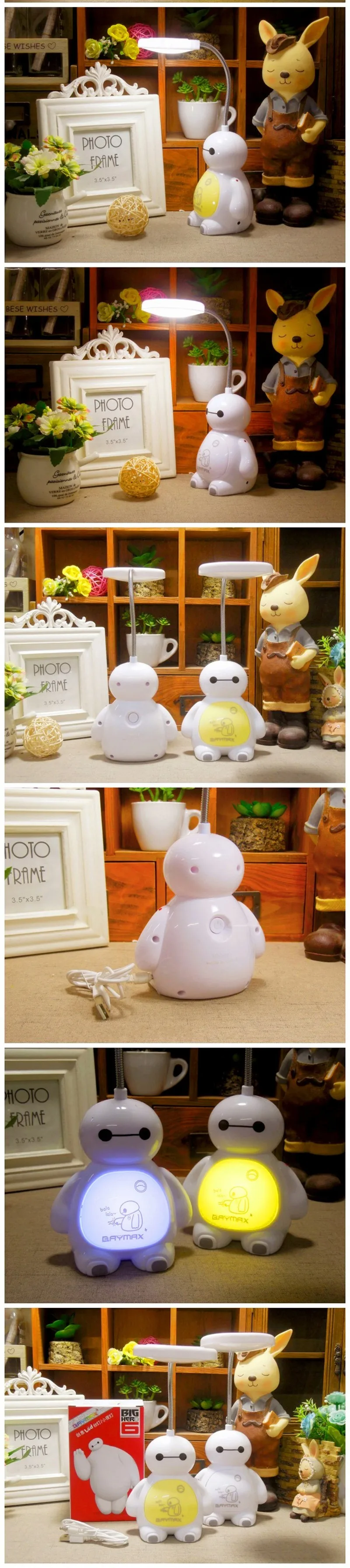 FENGLAIYI мультфильм Baymax Hero 6 красочный RGB светодиодный перезаряжаемый USB Белый Ночник