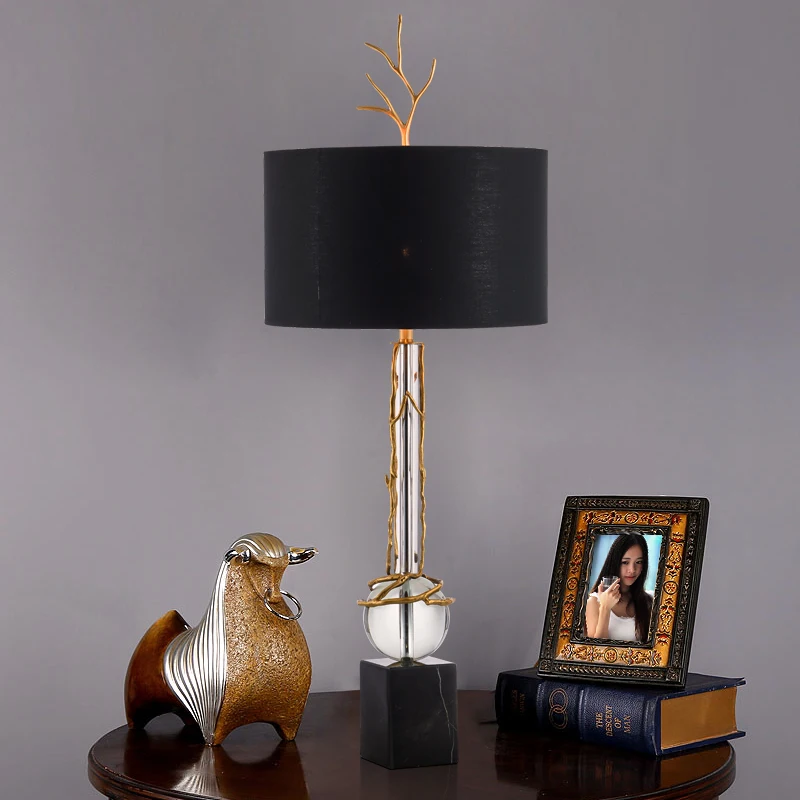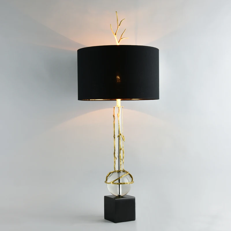 Новый дизайн Роскошные скандинавские хрустальные настольные светильники блеск LED Медь художественное украшение ткань абажур настольные лампы для гостиной спальни Спецификация Американская креативная современная светодиодная настольная лампа Размер света: диаметр 40 см * ширина 89 см Источник света: 1 шт. E27 12 Вт Светодиодная лампа теплый белый 3000 К, чистый белый 6000 К, AC90-260V вход Материал: кристалл/медь/мрамор Цвет корпуса: черный/прозрачный Применение: Отель, зал Чайный домик чайный бар Домашний декор осветительный прибор для гостиной паба Упаковка включает: 1 шт. современный простой стиль настольная лампа 1 шт E27 лампа бесплатно