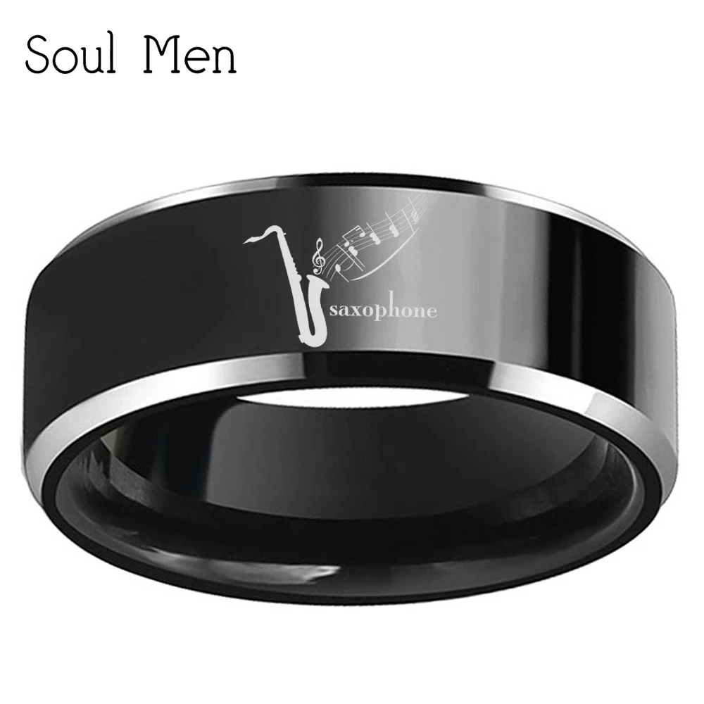 Заказное гравированное стилизованное Saxophone8mm черное вольфрамовое обручальное кольцо для мужчин и женщин