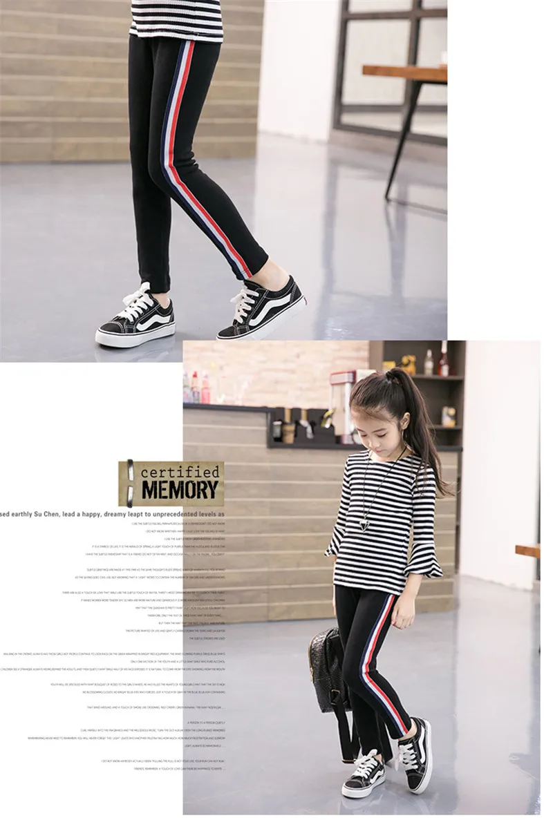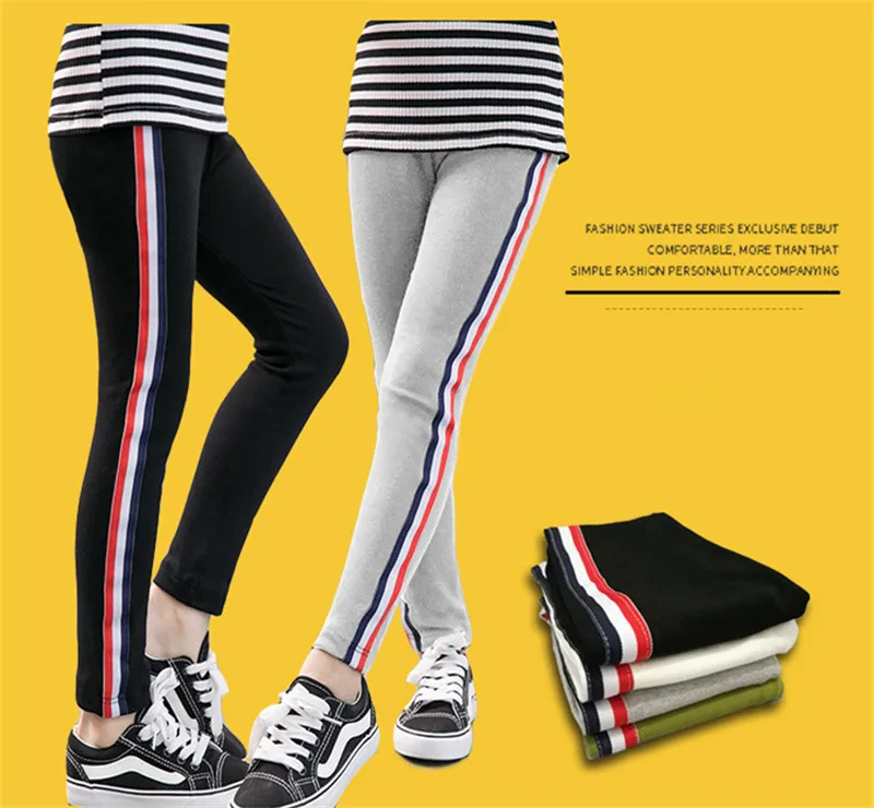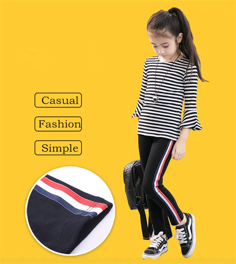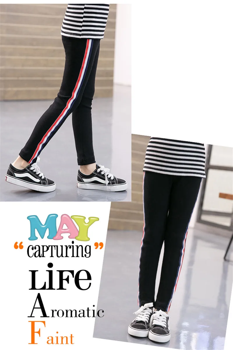 Детские штаны; Эластичные брюки для девочек; Леггинсы для От 3 до 13 лет; Одежда для малышей; Хлопковые спортивные повседневные брюки-карандаш в полоску для детей