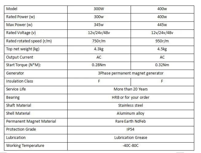 Brand NameNoneModel NumberPermanent magnet generatorTypeOtherMeasurement unitpiece/piecesSold insell_by_pieceEach pack1Package weight7.500Package size - length (cm)30Package size - width (cm)25Package size - height (cm)25Voltage12V/24V/48Power300W/400W