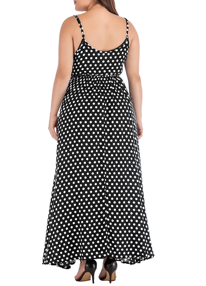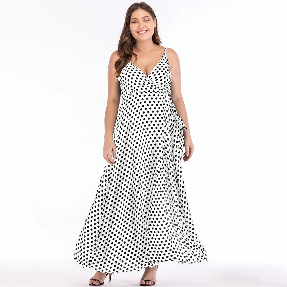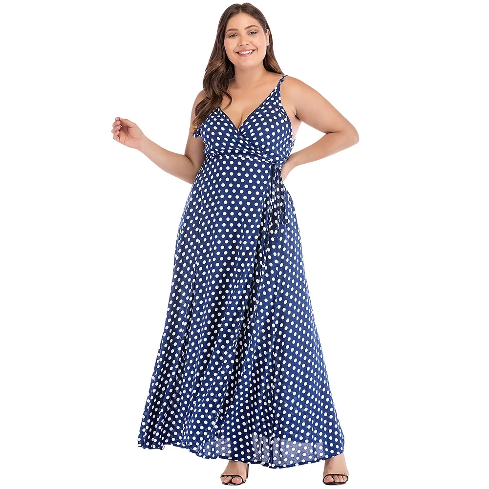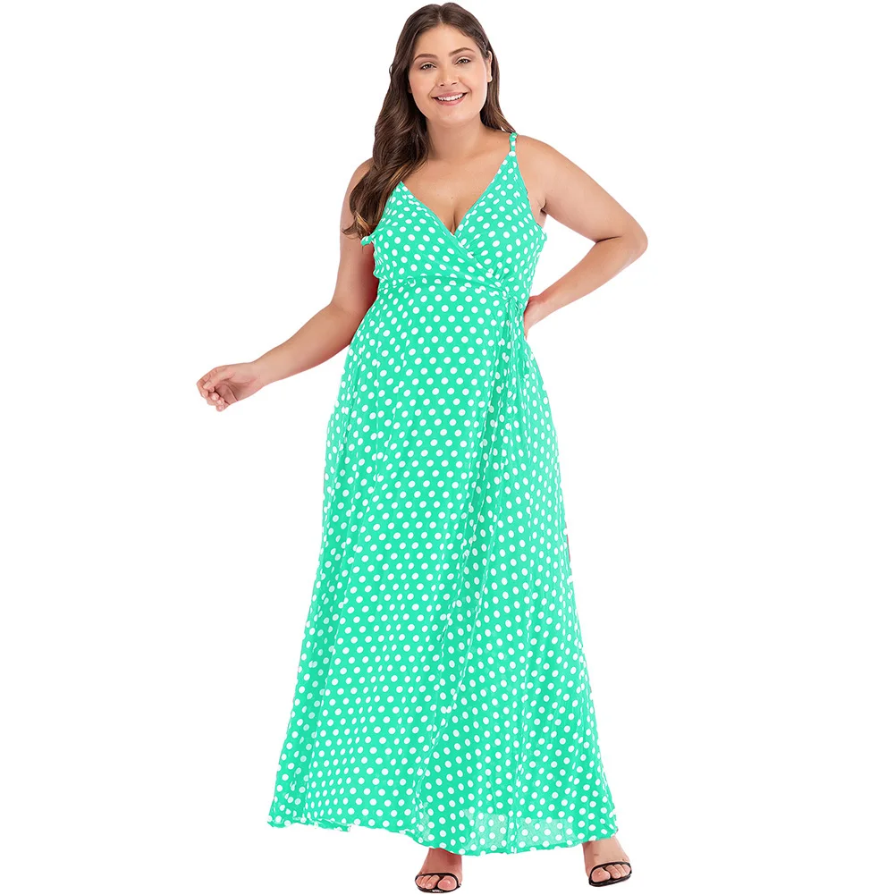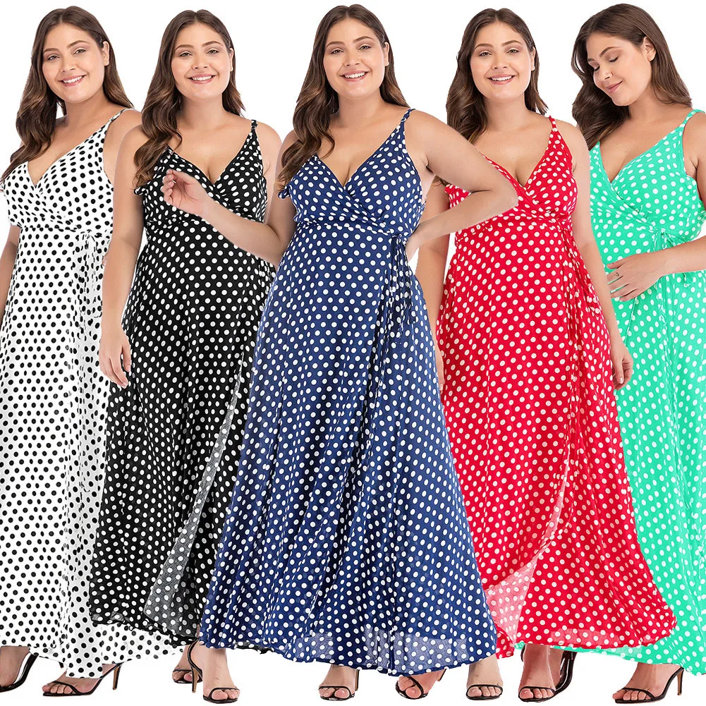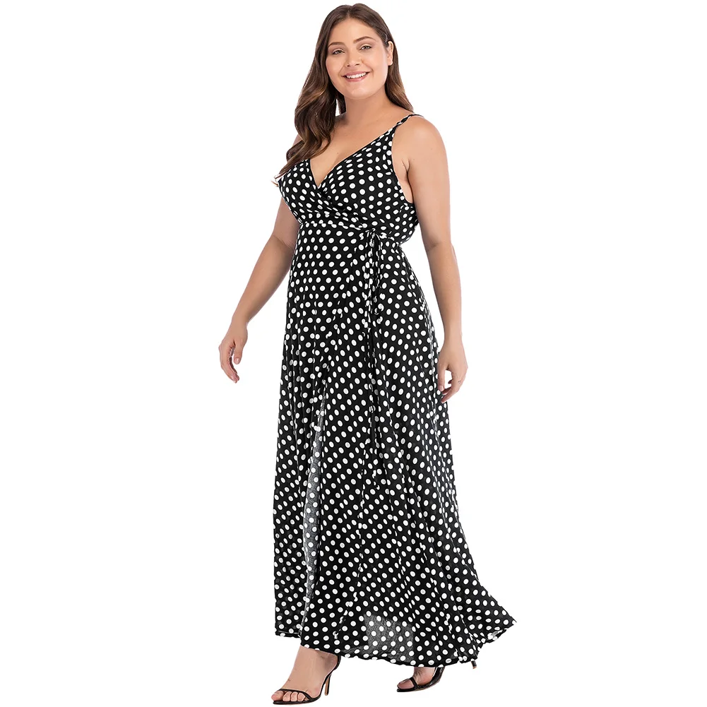 Летнее Женское Платье макси с принтом в горошек, с высоким разрезом, на тонких бретелях, vestidos, женское Новое сексуальное платье с глубоким v-образным вырезом, Пляжное длинное платье красного цвета