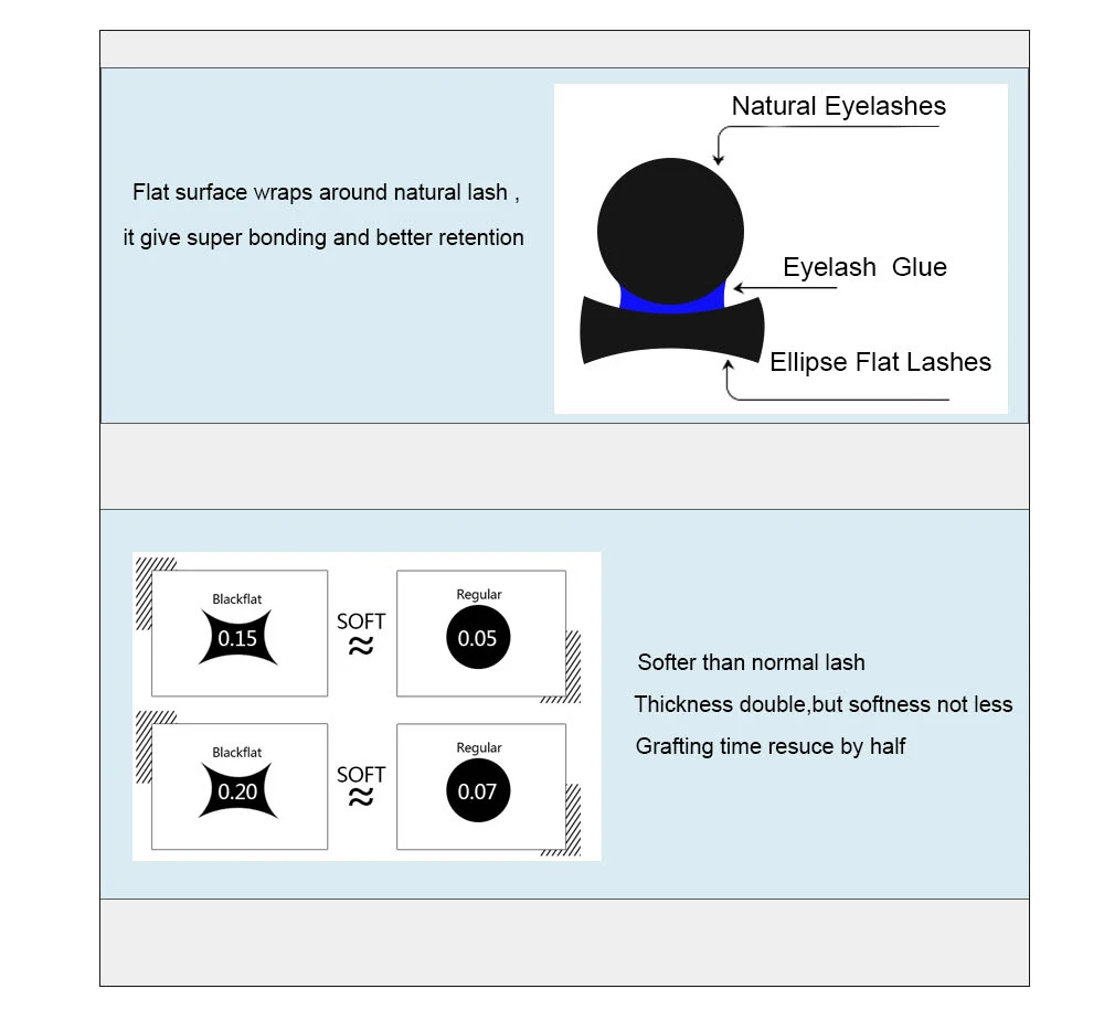 2. Увеличение поверхности между клеем и ресницами из-за его плоского сечения, это чрезвычайно проще для прививки.