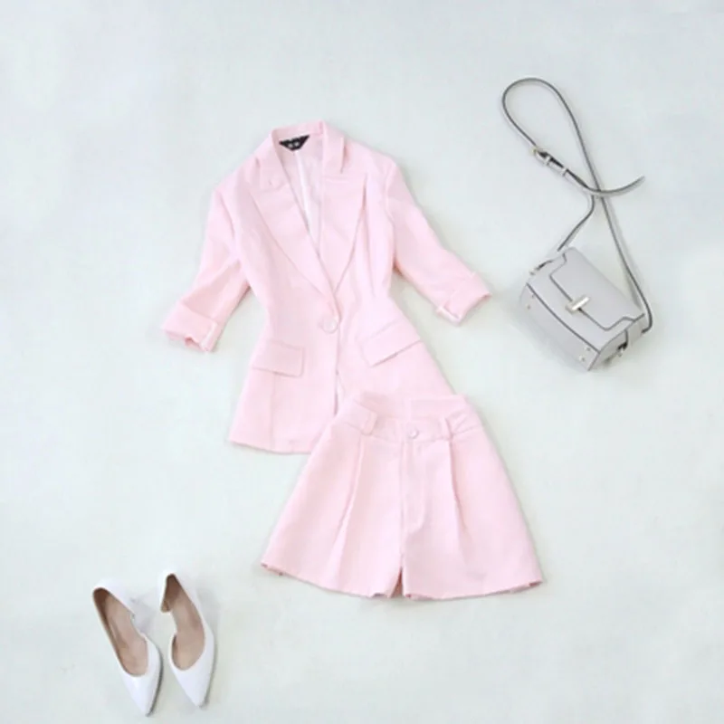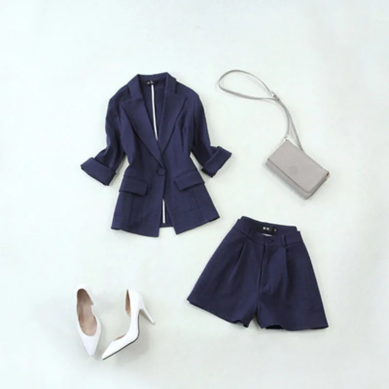 Женский льняной костюм, элегантный тонкий костюм из двух предметов, пиджак с поясом и шорты, три цвета, лето 2021