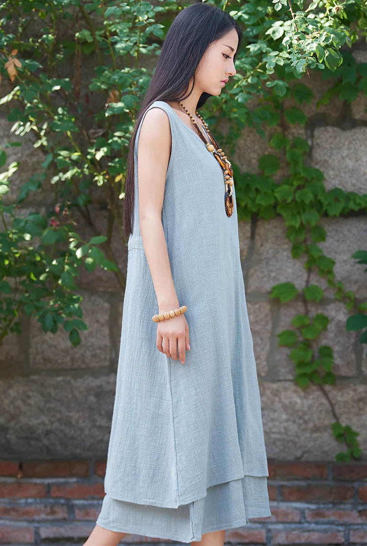 Женское платье без рукавов USWMIE, однотонное льняное платье с круглым вырезом и асимметричным подолом, лето 2018S