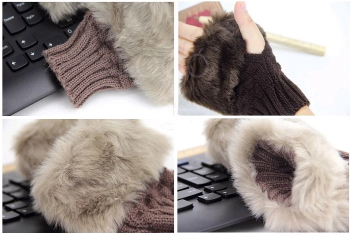 1 пара модных женских вязаных шерстяных зимних перчаток без пальцев на запястье
