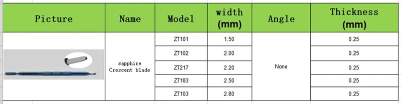Офтальмологические различные ширины сапфировое полумесяц лезвие офтальмологические хирургические офтальмологические инструменты