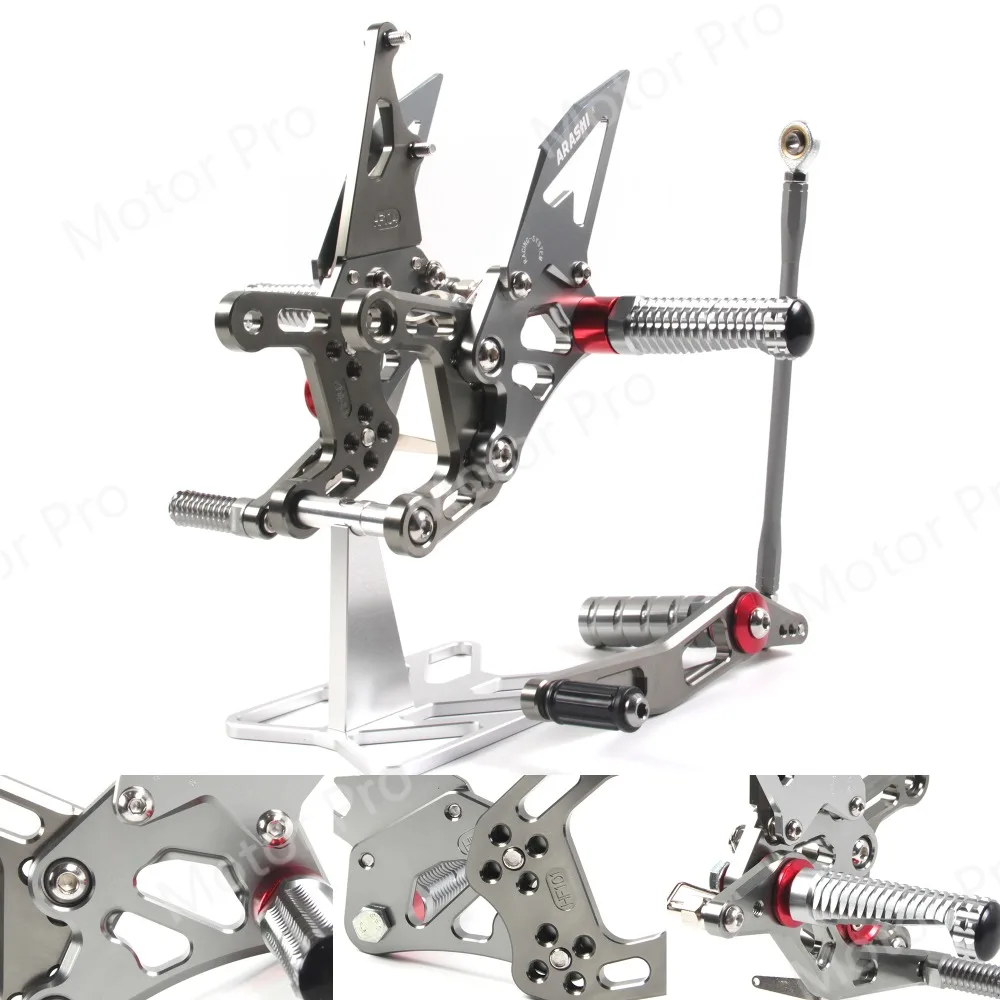 Описание товара Характеристика:Все Болты изготовлены из нержавеющей стали.Высокая Кручение и устойчивость к напряжению.Полностью регулируемое позиционирование подножек для обеспечения более комфортного и подвижного положения тела. Состояние:100% абсолютно новый и высокое качество Материал:6061-T6 авиационный алюминий Цвета:Черный, золотой, серый Приспособление:Для Yamaha YZF R1 2009-2014 Посылка включает в себя:1 комплект X регулируемые ножки